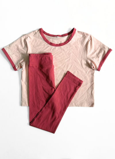 OOAK Boxy Crop Tee + Leggings Set (Knit Cotton) :: Rosey Mauve Colorblock (10Y)
