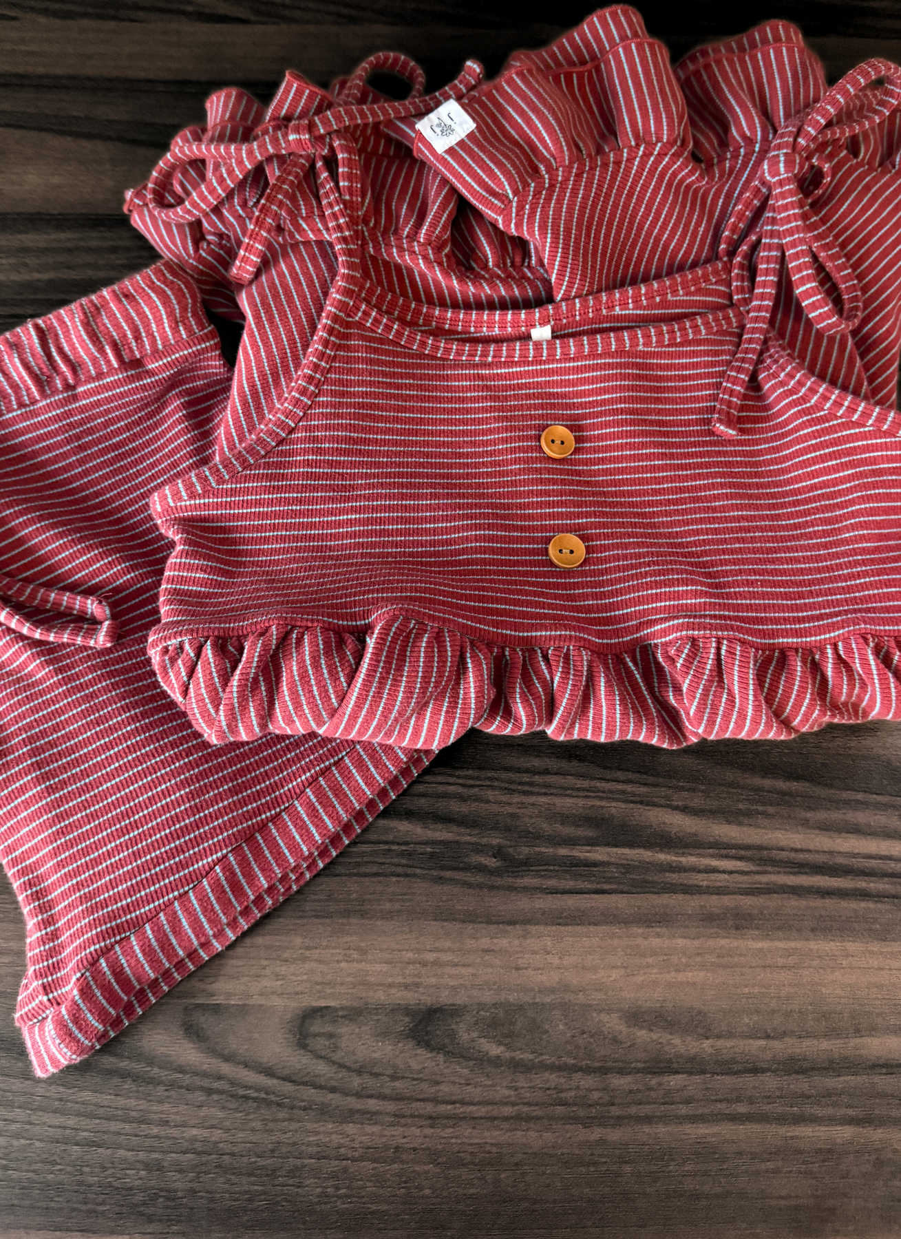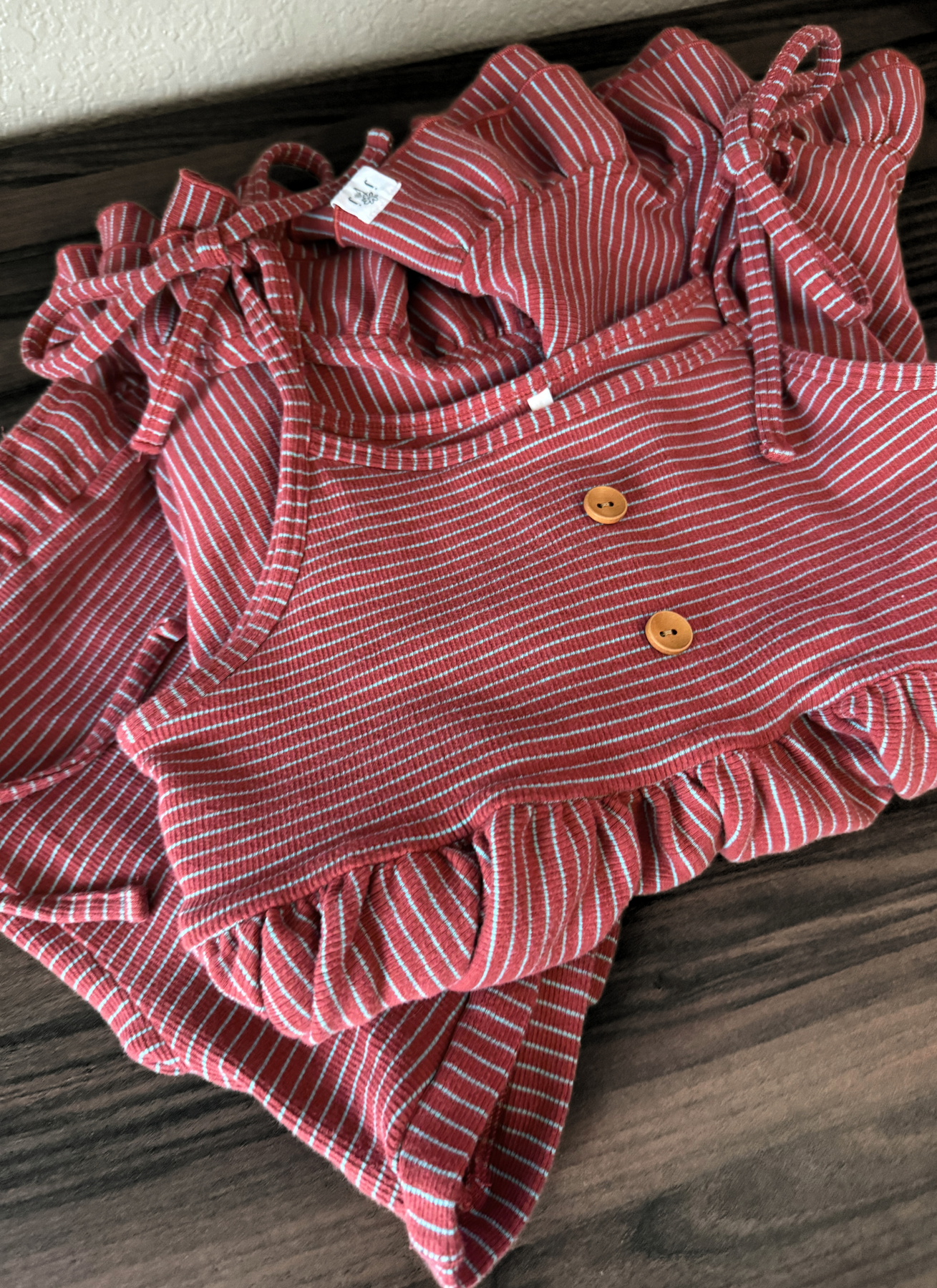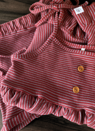 Regular price $38.00LAST House Tunic Set (Ribbed Knit Cotton) :: Brick + Dusty Blue Stripe (14/16Y) minor material flaws typical of this material.