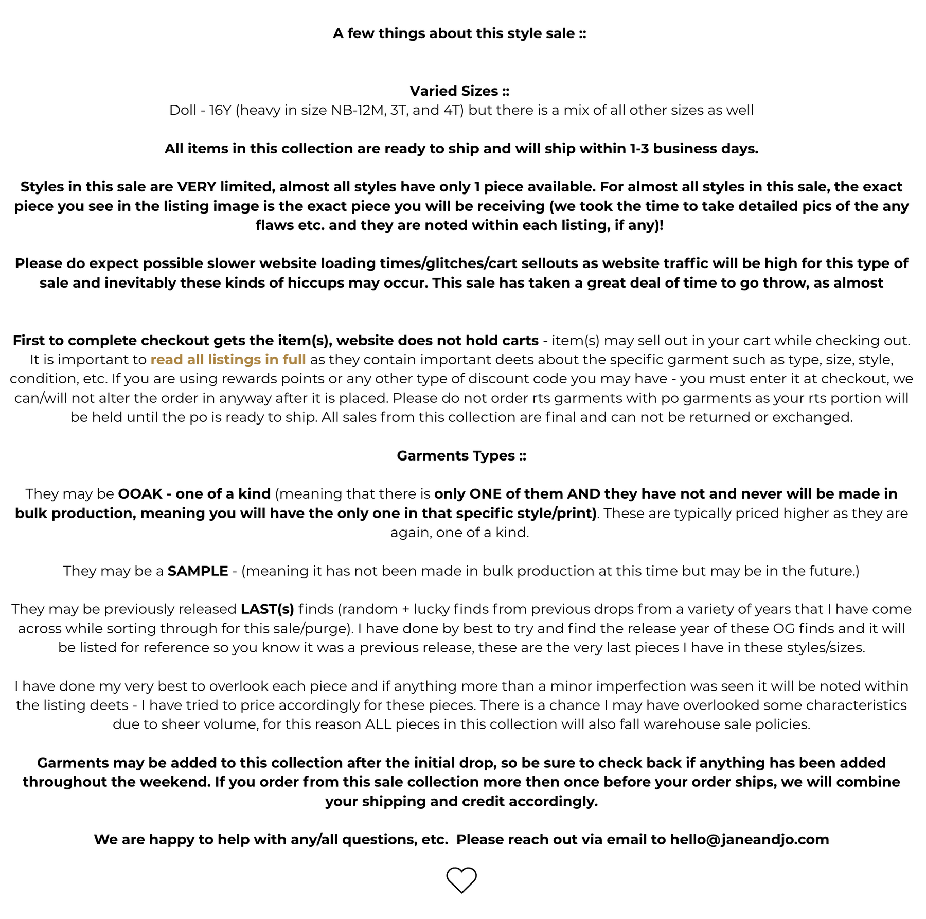 Please note, all OOAK/LASTS/PURGE sales are final and can not be returned or exchanged.