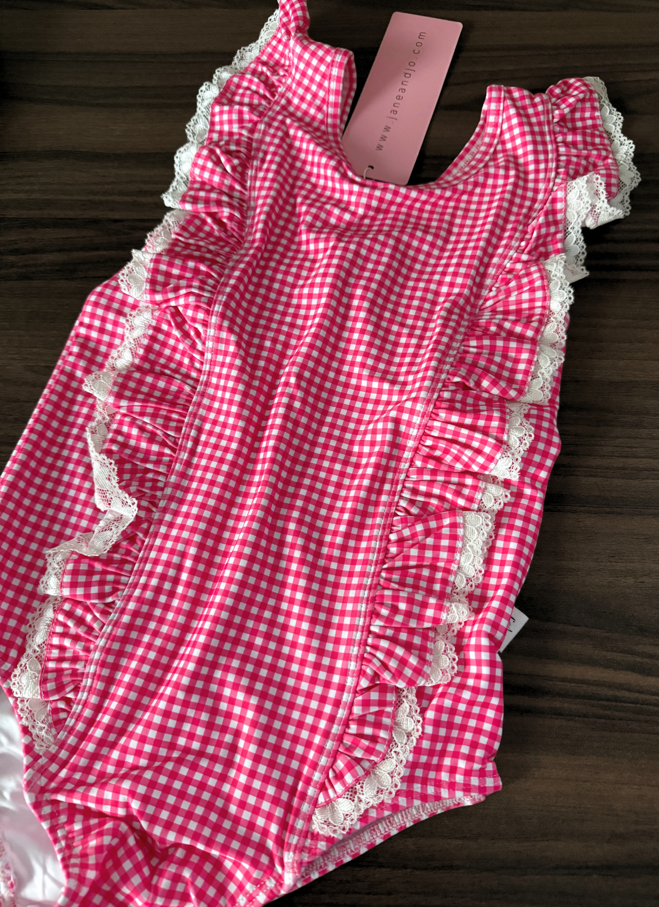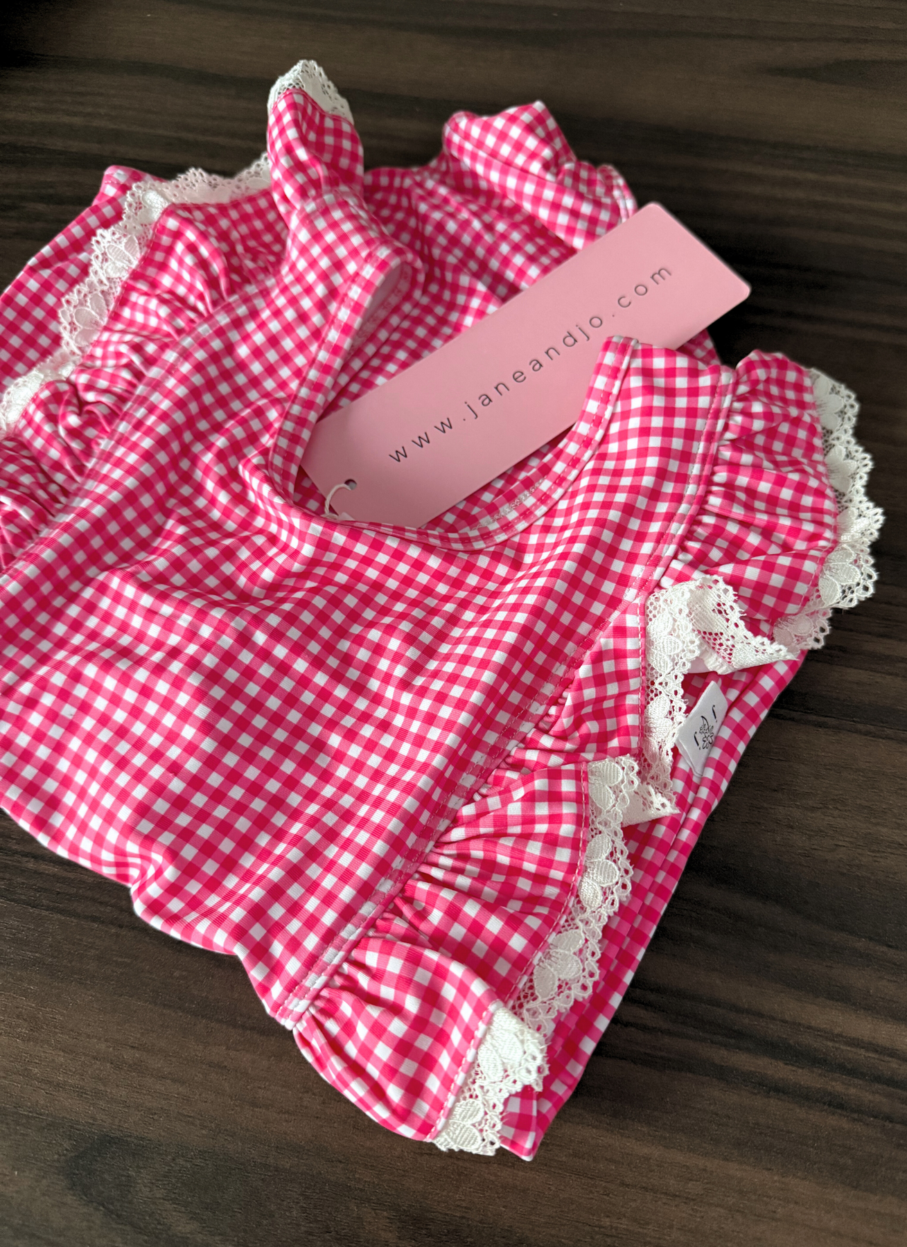 LAST Ruffle One Piece Swim :: Hot Pink Gingham (10Y)