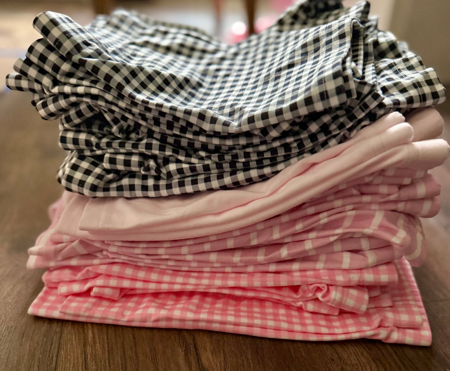 LAST Lounge Bloomers :: Black Check, Mauve Stripe, Pink Gingham, Light Pink these run very large, please use the chart below to select your correct size based on measurements!