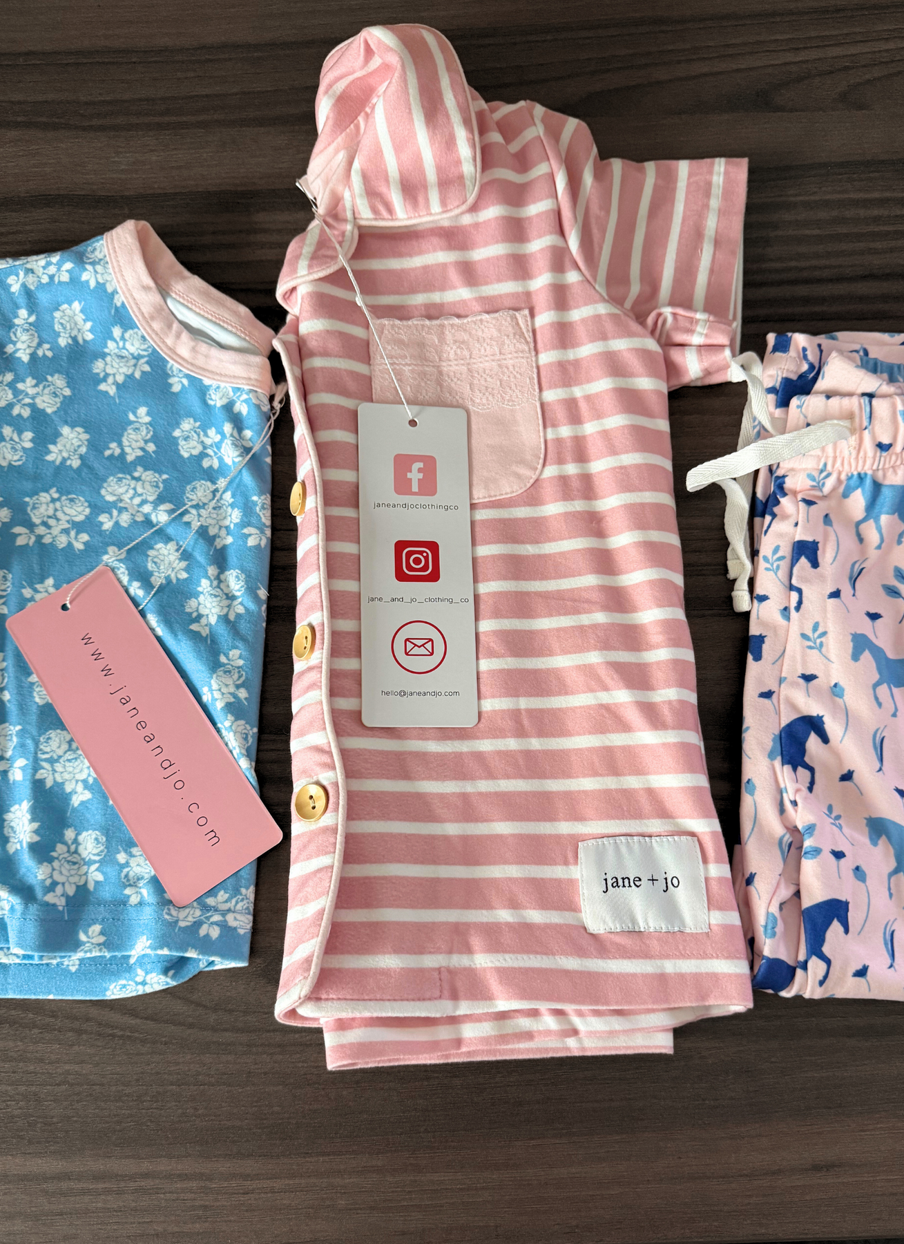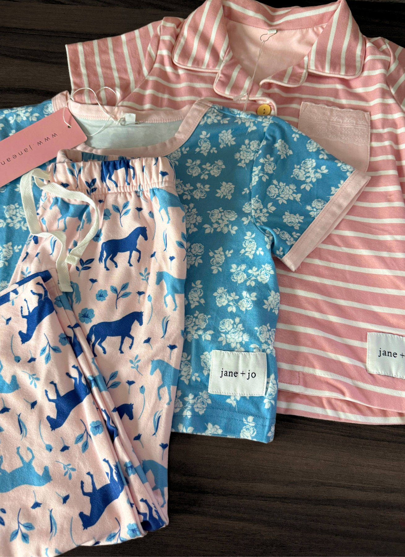 Regular price $22.00LAST 3PC Lounge Set :: Wild Horses (4T) One button up top + one oversized crop top + one coordinating lounge bottom. Some fabric imperfections are present. Ready to ship :: processing time in 1-3 business days (m-f)