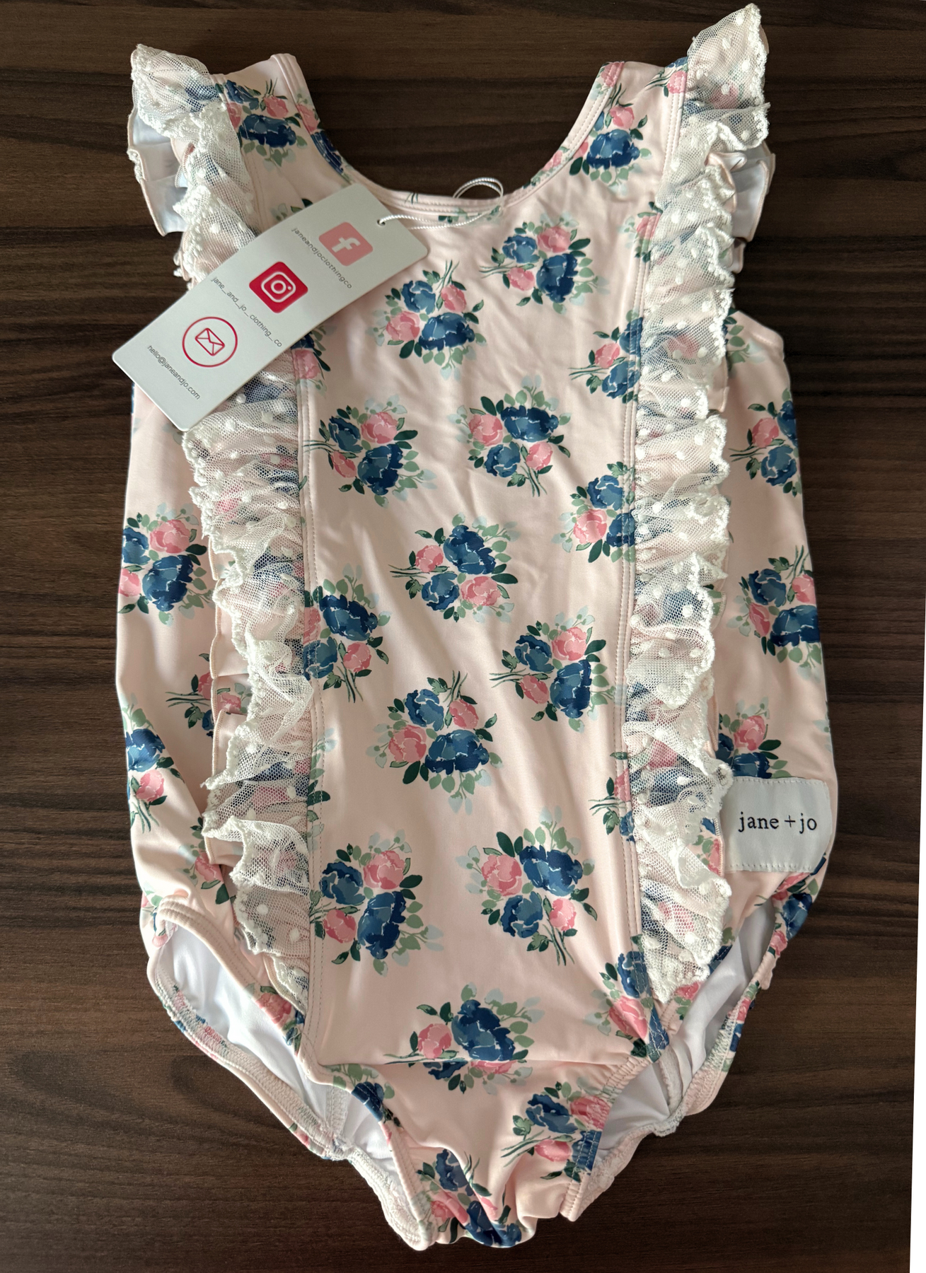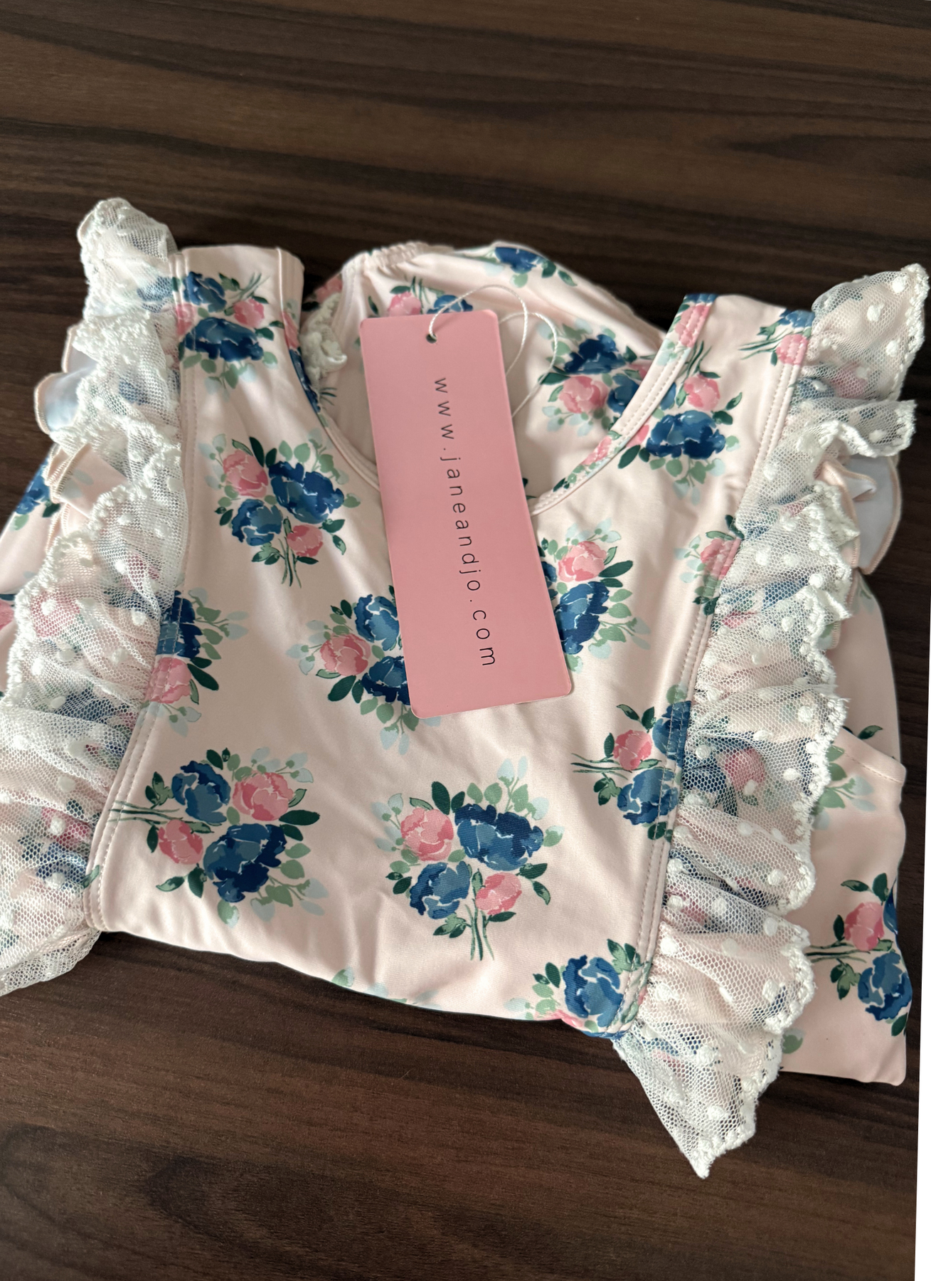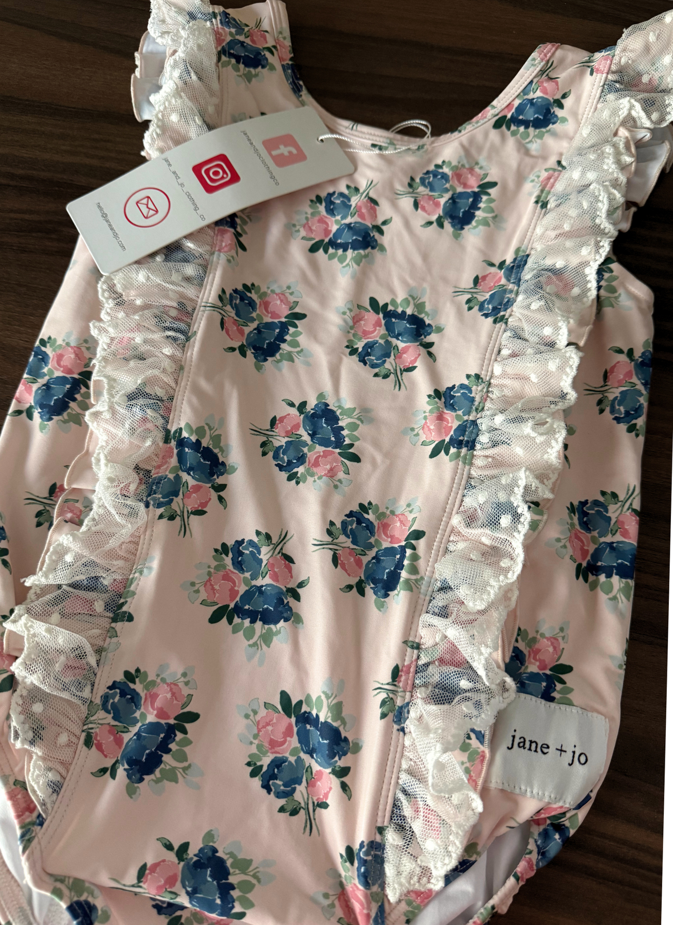 LAST Swim Play Dance 1 Piece :: Peach + Navy Floral (8Y)