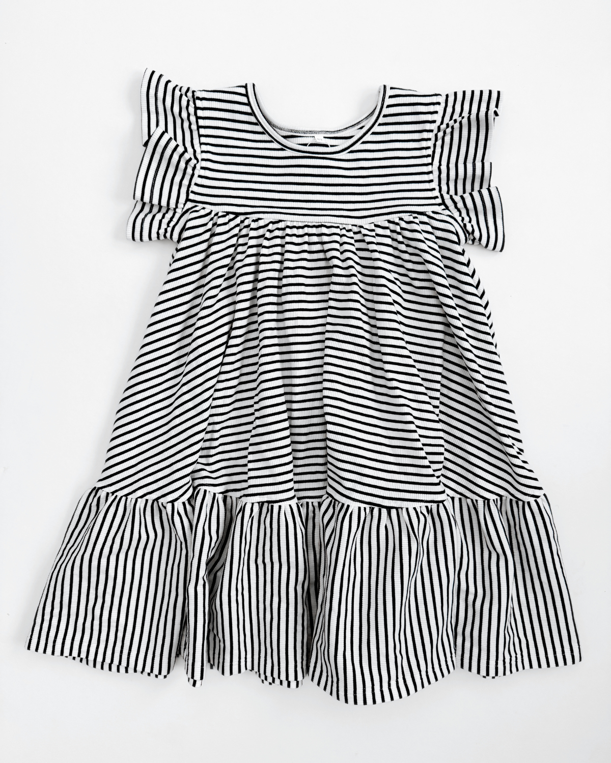 OOAK Tiered Day Dress (Ribbed Knit Cotton) :: White + Black Stripe (8Y)