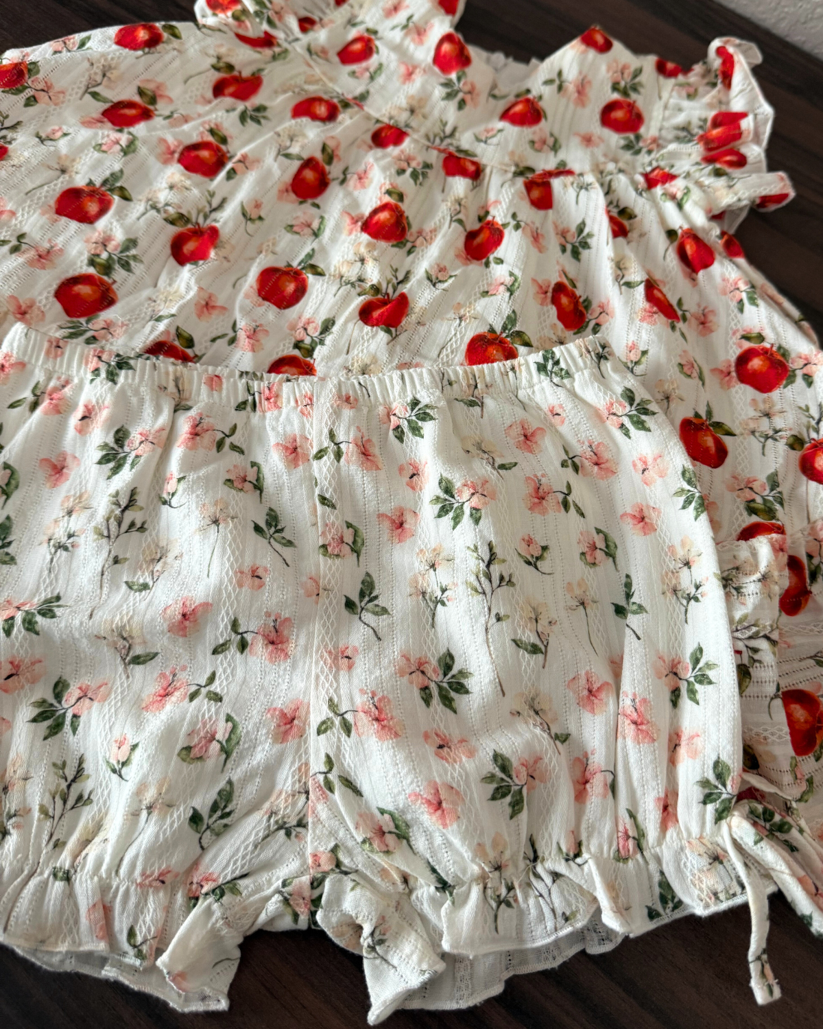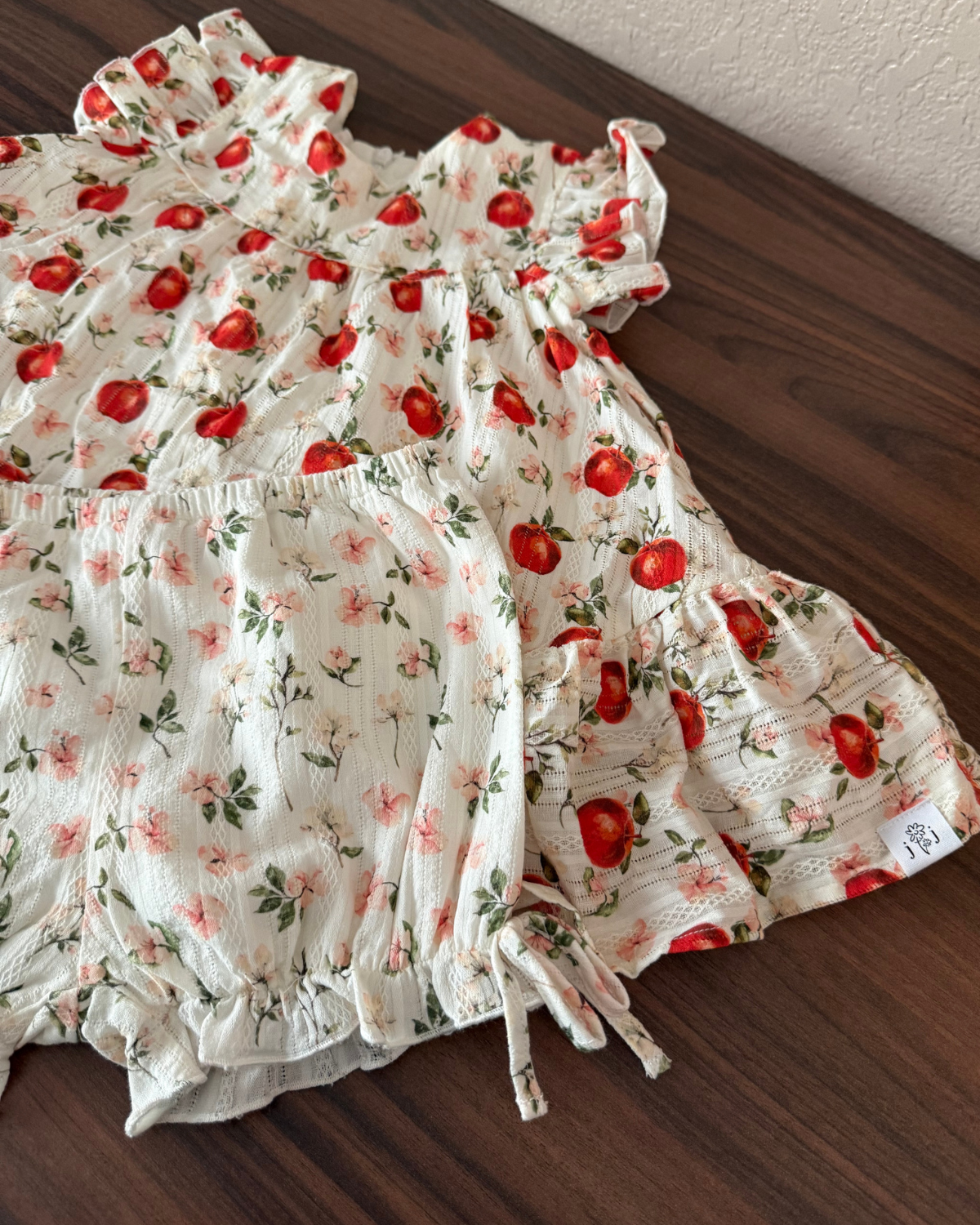 OOAK Tiered Tunic Set (Embroidered Woven Cotton) :: Vintage Apples (3T)