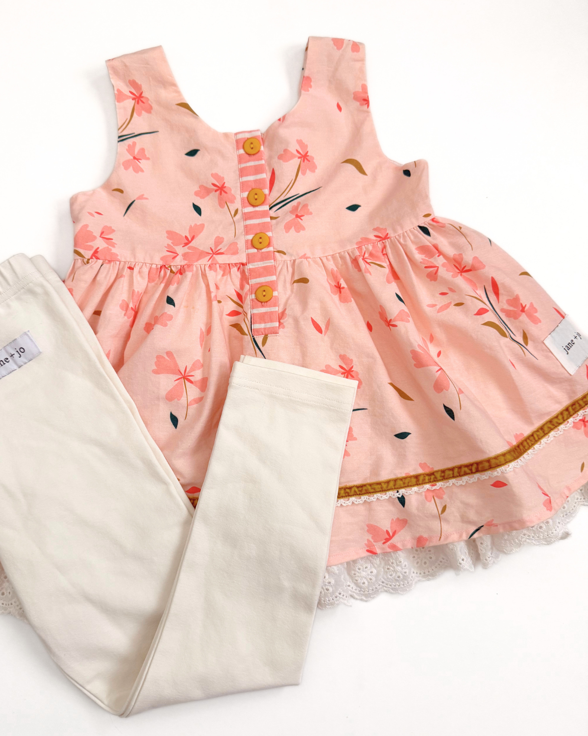 Style :: OOAK Tunic Set :: Almost Fall (6Y) 12" chest, 18" tunic length - working button placket, velour piping detail, eyelet hem. Knit cotton leggings.
