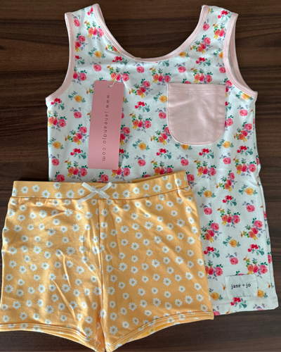 OOAK Boxy Crop Tee + Leggings Set (Knit Cotton) :: Rosey Mauve Colorblock (10Y)