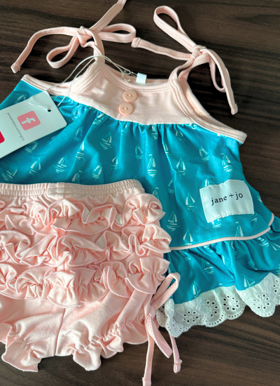 LAST Maxi Gown :: Love Song (NB) newborn, smocked back, adjusters on straps, tie sash.