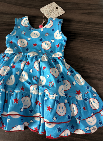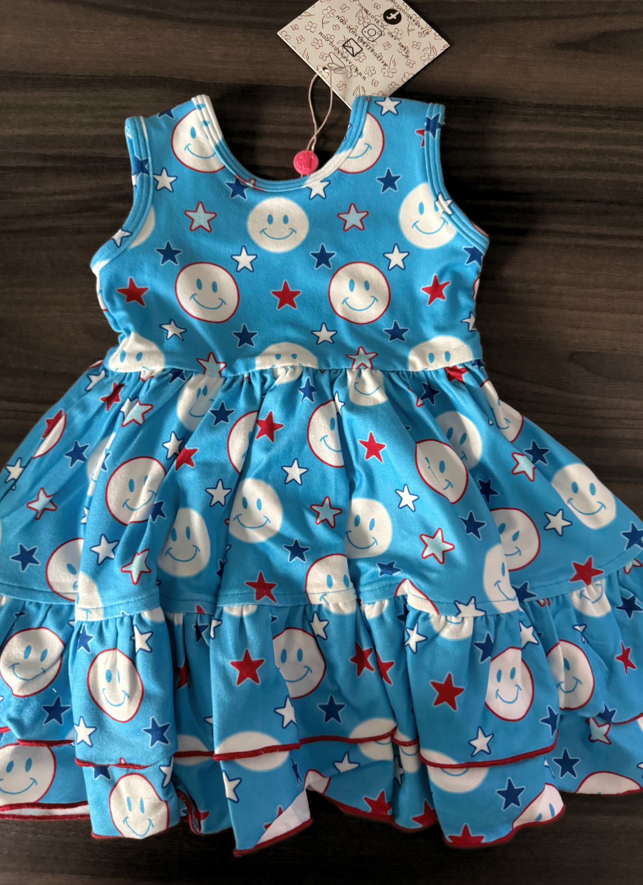 LAST Maxi Gown :: Rainbows (6M), smocked back, adjusters on straps, tie sash.