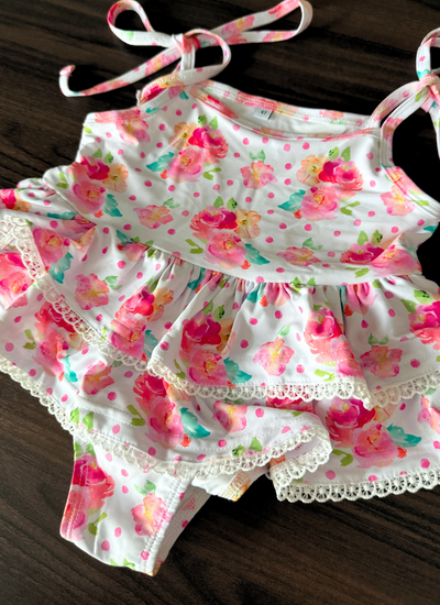 OOAK 1PC Skirted Swimsuit :: Happy Day Floral (4T)