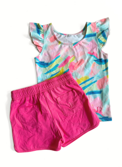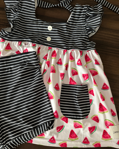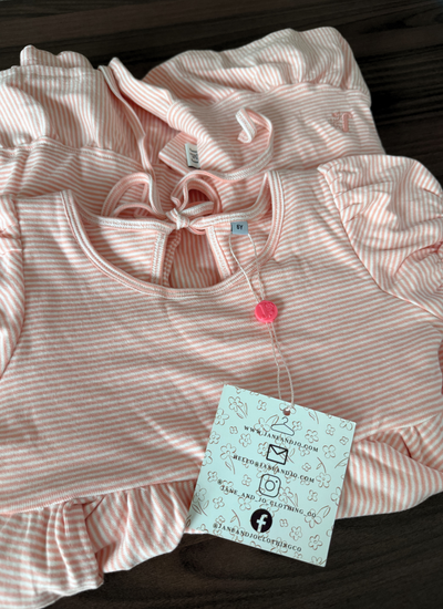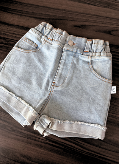 Style :: OOAK High Ruffle Waist Denim Shorts :: Light Black Wash (6Y) - I feel these may run slightly small. There is no stretch to this denim blend. Ruffle style waist with elastic.